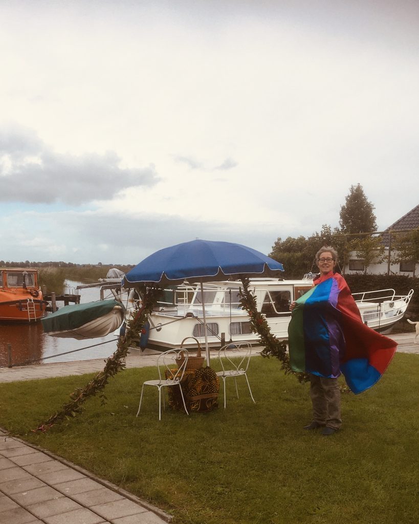 Tijdens de wandeling mocht ik de deelnemers even laten plaatsnemen op een stoel, in mijn gedecoreerd decor, waar ik hen toezong met het lied van Annie M.G. Schmidt: ‘Zonder jou’.